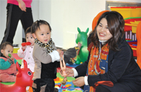 2011年6月1日,集團(tuán)人力資源總監(jiān)李俐萱和聾啞兒童一起歡度六一。