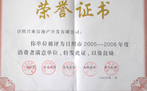 ·2006年1月,興業(yè)房地產獲得“2005-2006年度消費者滿意單位”