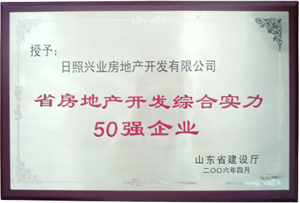 ·2006年4月,山東省建設廳授予興業(yè)房地產“省房地產開發(fā)綜合實力50強企業(yè)”