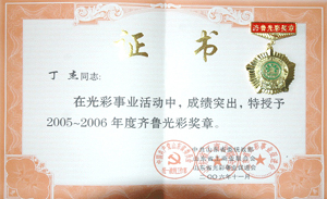 ·2006年11月,丁杰董事長獲得“2005-2006年度齊魯光彩獎章”