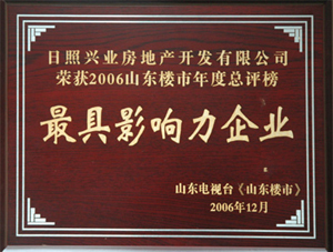 ·2006年12月,日照興業(yè)房地產開發(fā)有限公司榮獲2006山東樓上年度總評榜最具有影響力企業(yè)