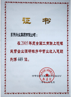 ·2006年9月,全國工商聯(lián)上規(guī)模民營企業(yè)調研排序中營業(yè)收入總額列第449位
