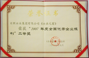 ·2007年3月,日照市企業(yè)信用評(píng)價(jià)工作委員會(huì)評(píng)審認(rèn)定興業(yè)集團(tuán)為“山東省日照市AAA級(jí)信用企業(yè)”