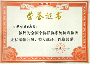 ·2008年,被評為全國各協(xié)私協(xié)系統(tǒng)抗震救災(zāi)無私奉獻會員