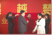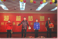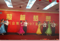 瑞犬凱歌辭舊歲,花豬起舞賀新年。2月6日晚,凱萊大酒店會展中心 內(nèi)歌聲悠揚、掌聲陣陣,“2007年日照興業(yè)集團迎春聯(lián)歡文藝晚會”正在這里舉行。集團領(lǐng)導(dǎo)丁杰、王建國、韓金軍、趙文強、申作華、李麗萱、李春賢以及集團機關(guān)、各分公司的標(biāo)兵、先進工作者、職工代表近400人一起興致勃勃地觀看了演出。全國政協(xié)委員、民革中央畫院院長、國畫大師宋雨桂應(yīng)邀出席了晚會。市內(nèi)各大銀行、日照日報、日照電視臺等單位的領(lǐng)導(dǎo)、記者、工作人員也觀看演出,歡聚一堂,共慶新年。
